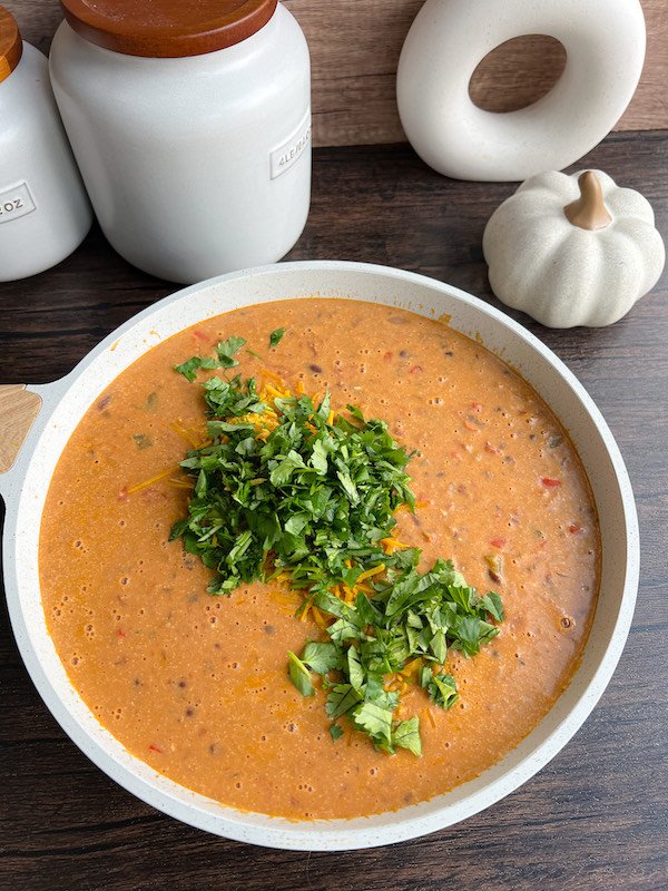 each spoonful is a blend of light tomato hints, warming spices, and tender beans, all elevated with creamy garlic lime cashew cream that’s stirred right into the soup base.