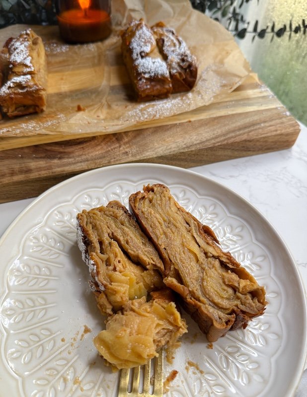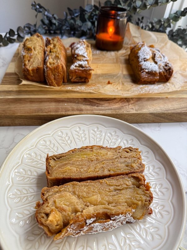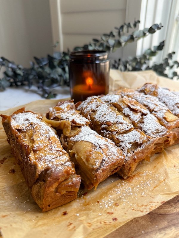 it looks like a rustic bread from the outside, but once you cut into it, you’ll see those gorgeous apple layers stacked together like delicate pages of a book.