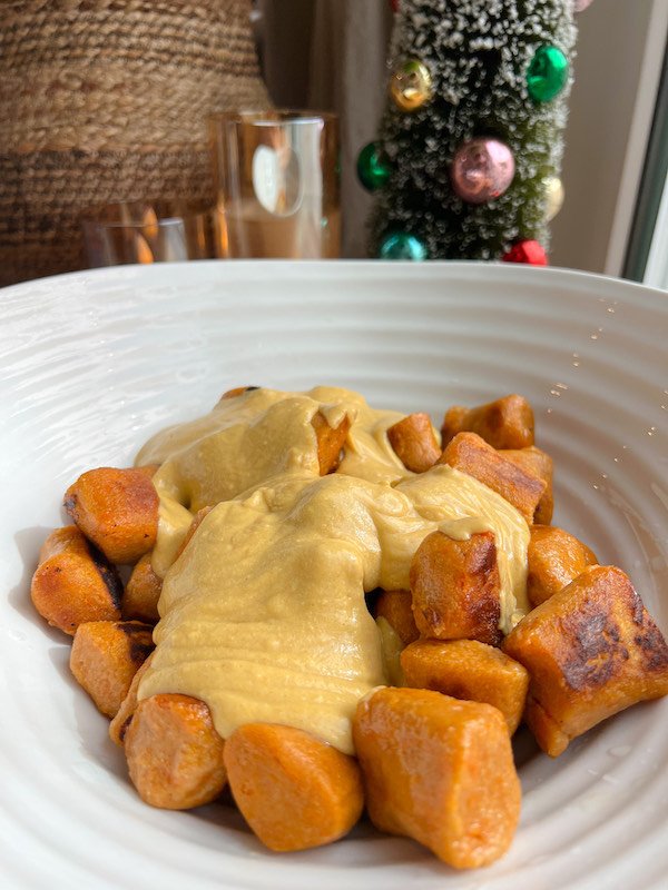 - adjust the ingredients to achieve the desired flavor and consistency. pour the creamy pumpkin sauce over the sweet potato gnocchi and savor the deliciousness of your new vegan and gluten-free creation!