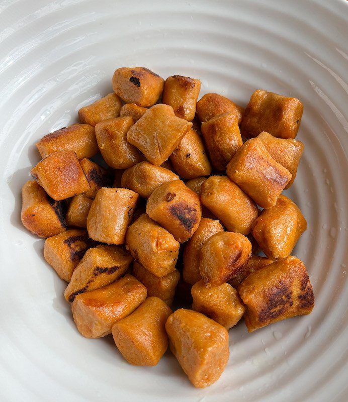 for optimal texture, we recommend sautéing the gnocchi in olive oil or avocado oil for a few minutes until the outside is a little crispy.