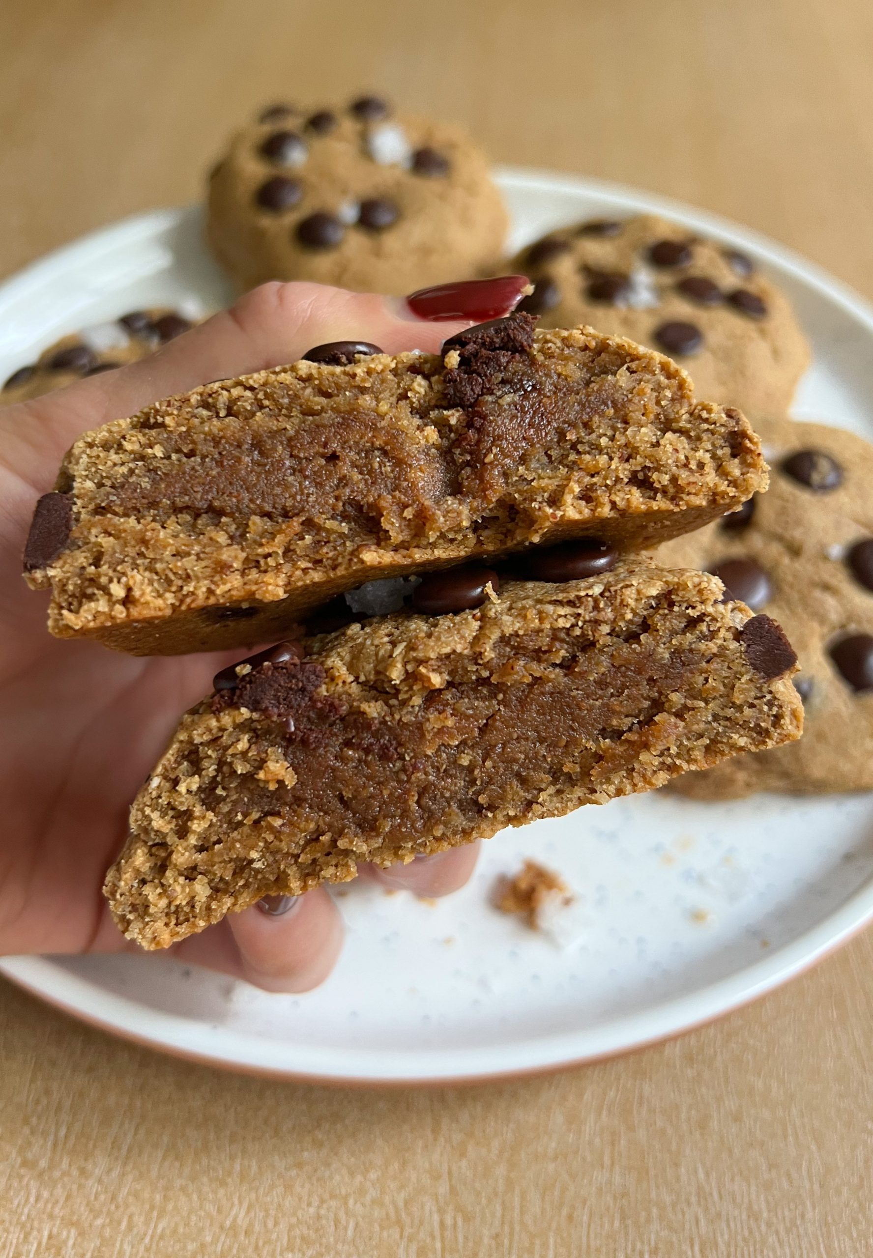 on a Sunday, we bake, which means Vegan Chocolate Chip Cookies Stuffed with Caramel is on the menu! who wouldn’t love huge chocolate chip cookies stuffed with an almond butter caramel?! honestly, the cookies are some of the best that i have ever tasted.