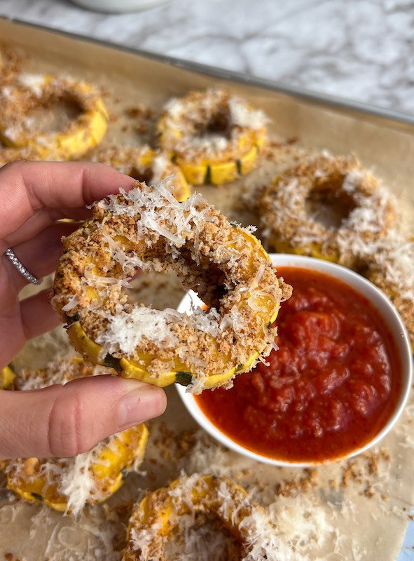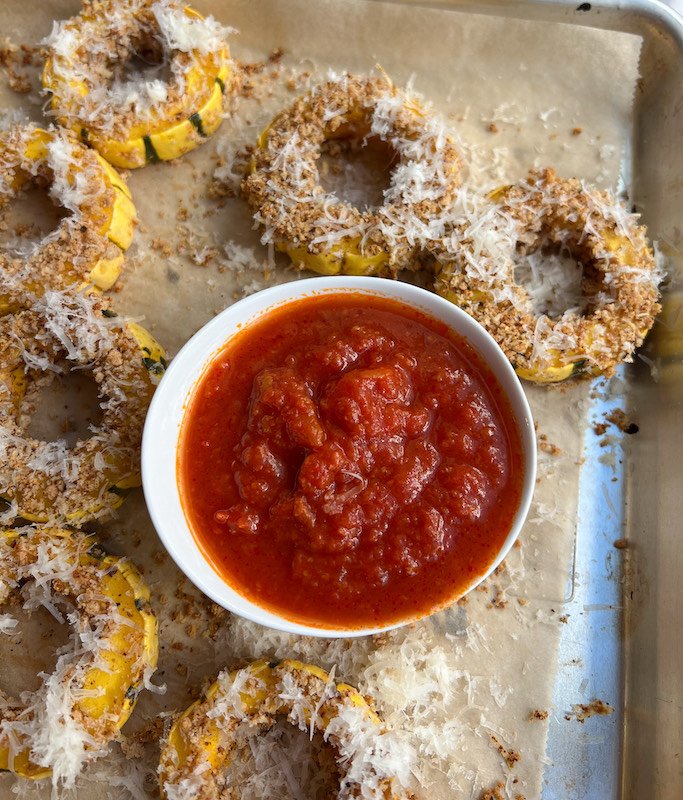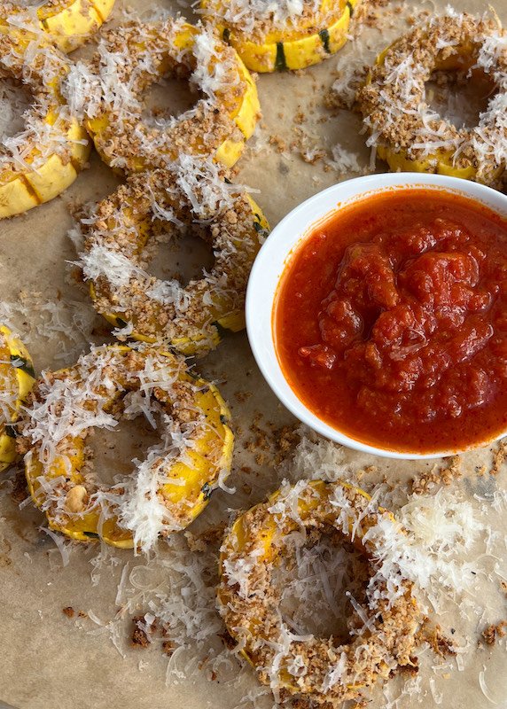 vegan parmesan crusted delicata squash rings