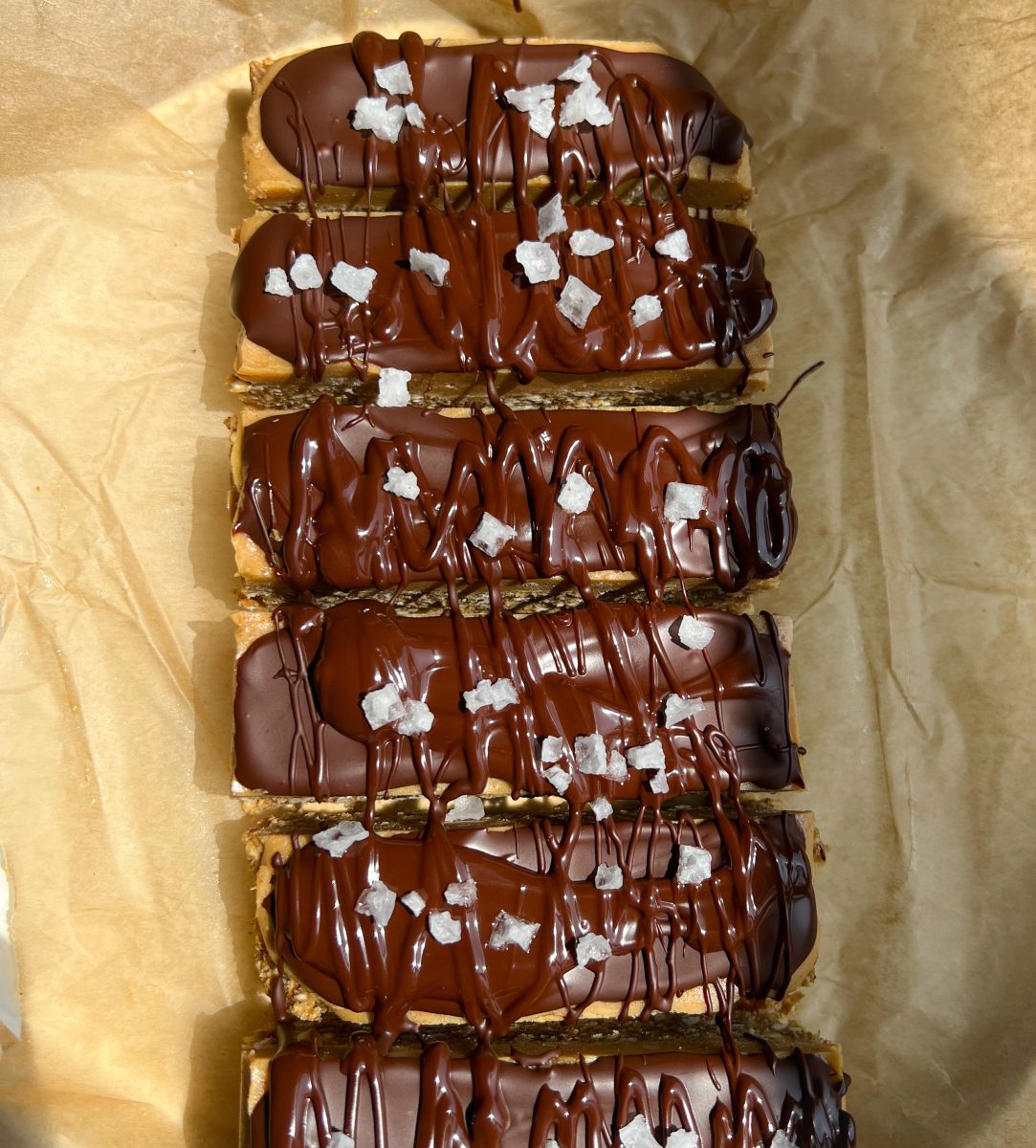 the bars are wholesome but decadent enough where they taste like candy bars.