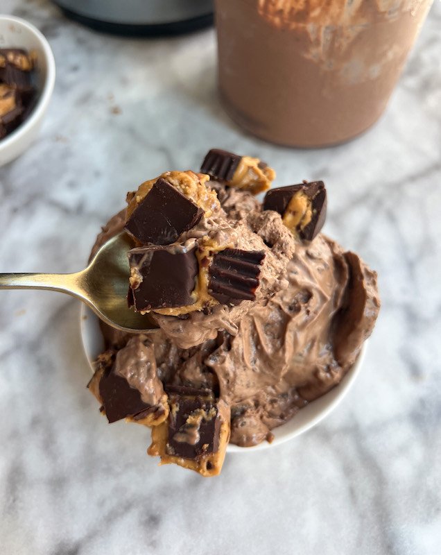 made in the ninja creami, this ice cream is a breeze to prepare, and the homemade peanut butter cups add an extra layer of indulgence that’s hard to resist.