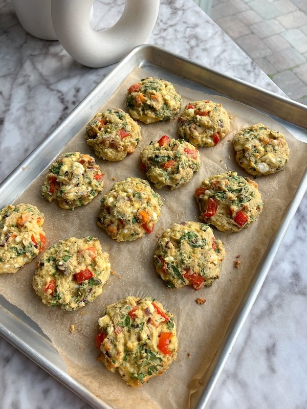 each biscuit is high in protein, thanks to the combination of eggs, cottage cheese, and feta.