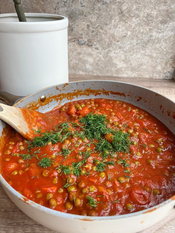 the slow-cooking process ensures that the peas absorb the rich flavors of the sauce, creating a velvety and satisfying texture.