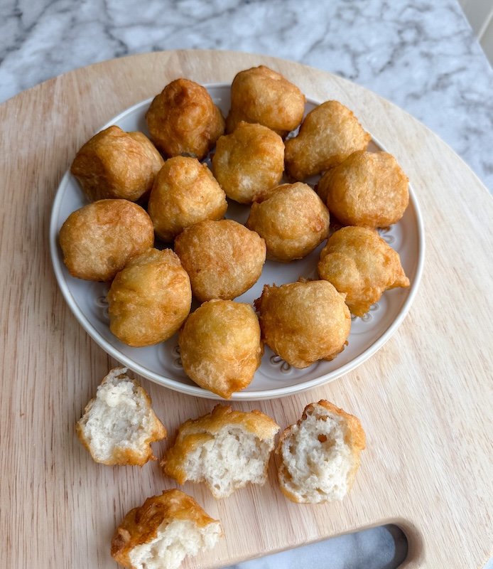 these little golden puffs are traditionally made with wheat flour and come out super airy and light.
